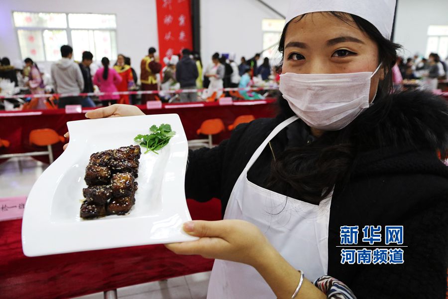 11月10日,河南農(nóng)業(yè)大學(xué)食品學(xué)院的“廚師”們將做好的菜肴擺上展臺(tái)。