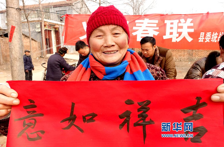 央廣網(wǎng)河南分網(wǎng)消息 春節(jié)臨近,河南省商丘市夏邑縣委統(tǒng)戰(zhàn)部組織部分夏邑籍中國書法家協(xié)會(huì)會(huì)員,來到該縣濟(jì)陽鎮(zhèn)濟(jì)北村,開展“義寫春聯(lián)迎新春”活動(dòng),書法家們?yōu)樵摯遑毨艏按迕瘳F(xiàn)場(chǎng)寫春聯(lián),送春聯(lián),把濃濃的節(jié)日祝福送給村民。新華網(wǎng)發(fā) (苗育才攝)