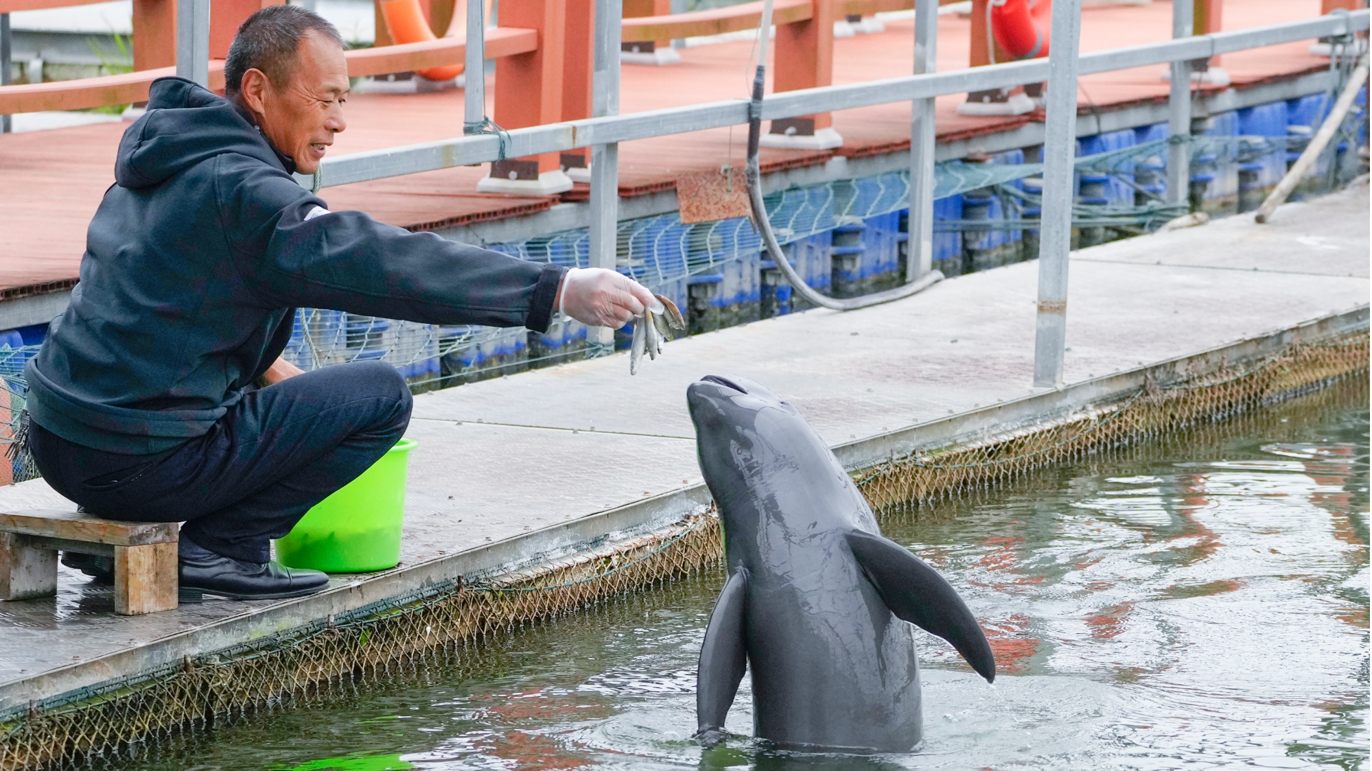 “每天巡護(hù)時(shí)看到江豚探頭換氣,就像看到自家孩子一樣親切!痹谔禊Z洲保護(hù)區(qū)從事飼養(yǎng)工作15年的丁澤良,曾是一名靠江吃飯的漁民。2008年冬天,他救助了一頭因水面結(jié)冰無法換氣的江豚,從此與這些“水中精靈”結(jié)下不解之緣。