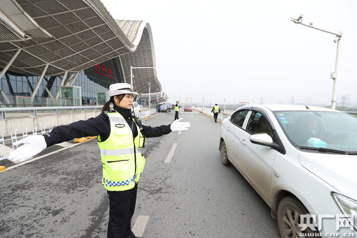 11月16日,武漢火車站,武漢市交通管理局鐵路大隊民警正在疏導(dǎo)交通。