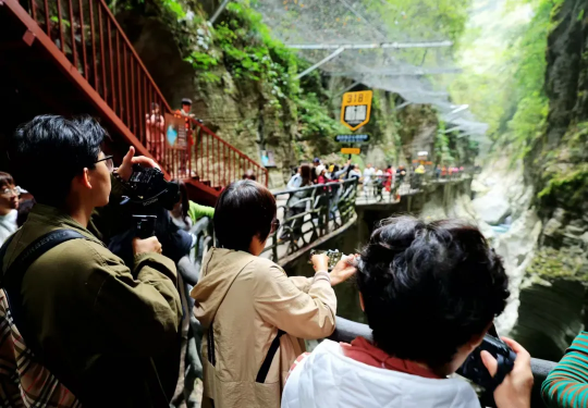 游客在景區(qū)標(biāo)志性打卡點(diǎn)拍照