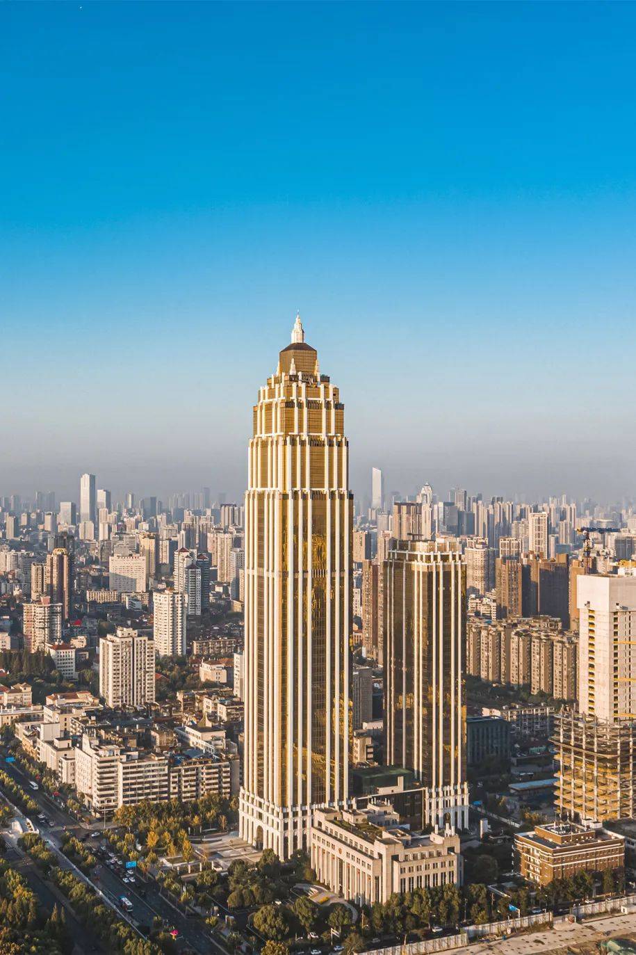 漢口沿江大道長江二橋片,一棟376米高的船帆型大樓矗立城市之上,作為長江北岸沿江第一高樓,刷新武漢天地商務(wù)集群天際線。