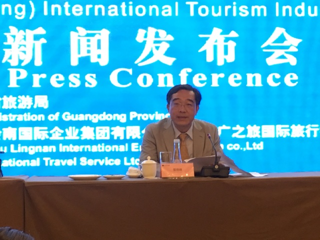 廣東省旅游局副局長曾曉峰在發(fā)布會上演講,攝影陳菲