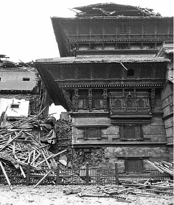強震使尼泊爾文化古跡損毀嚴重,位于加德滿都市中心的老皇宮院墻坍塌,著名世界文化遺產杜巴廣場上三分之二的建筑物倒塌,整個廣場看上去已成一片廢墟。此外,市中心的加德滿都地標性建筑之一、擁有百余年歷史的比姆森塔(前譯“達拉哈拉塔”)在地震中完全倒塌,參與搜救的警方人員說,在廢墟下至少發(fā)現百余具遇難者遺體。