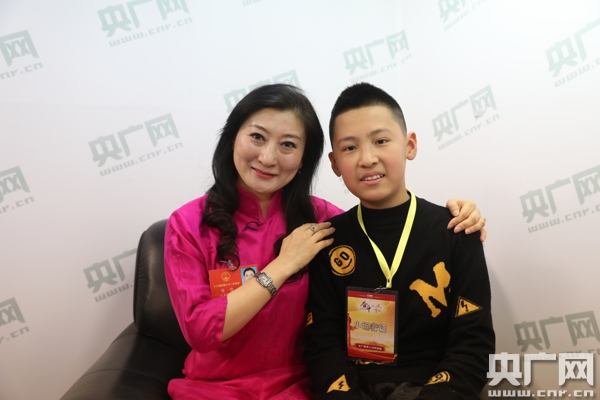 全國人大代表、國家一級演員陳澄(左)接受央廣網(wǎng)小記者劉新辰(右)采訪。