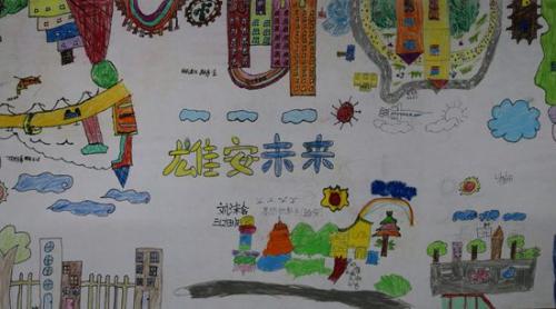 北京市朝陽區(qū)實驗小學(xué)雄安校區(qū)學(xué)生們畫筆下的雄安。(翻拍)