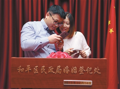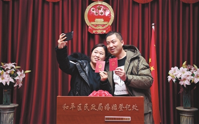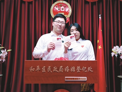 2月14日,沈城情侶們開(kāi)啟了各種“花式”秀恩愛(ài)。當(dāng)天一大早,沈城各區(qū)婚姻登記處都迎來(lái)了排隊(duì)等待登記的新人們。昨日截至17時(shí),全市13個(gè)區(qū)、縣(市)婚姻登記處及市涉外婚姻登記處共辦理結(jié)婚登記1701對(duì),離婚118對(duì)。