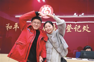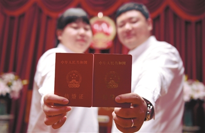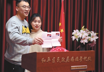 記者通過(guò)采訪(fǎng)了解到,昨天登記的新人中,總體上看,90后成為領(lǐng)證登記的“主力軍”,其中還有一些95后新人。