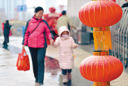 26日下午,已經(jīng)連續(xù)39天沒有下雪的沈城,又飄起了小雪,配上春節(jié)期間的大紅燈籠,顯得格外的喜慶。記者 王勇 攝影報(bào)道