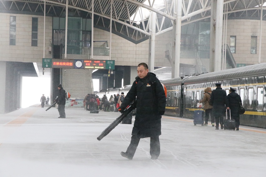 長春、吉林等車站干部職工盯緊看住進出站口、站臺、候車室、售票大廳門前等旅客通行密集區(qū)域,做到雪隨落隨清,并鋪設(shè)防滑墊,防止旅客滑倒摔傷,還在站臺、步行梯、電梯等重點部位設(shè)立了專人負責(zé)防護;加強旅客購票、進站、安檢、檢票、乘降、出站等關(guān)鍵環(huán)節(jié)的疏解引導(dǎo);實時通過車站廣播、LED大屏幕向旅客滾動播報列車開行動態(tài)信息,在候車大廳工作人員手持喇叭,隨時向旅客發(fā)布相關(guān)信息資訊;組織愛心服務(wù)隊,做好老弱病殘孕等重點旅客的候車進站上車。同時,開放所有售票窗口,啟用全部自助售取票機,方便旅客合理安排行程。 -