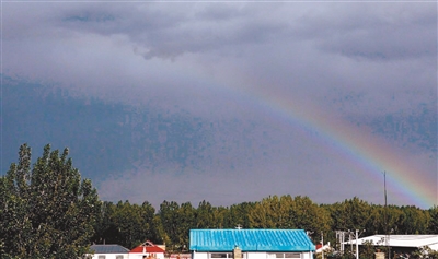 沈陽昨日喜雨:舉首天掛虹 低頭水映穹