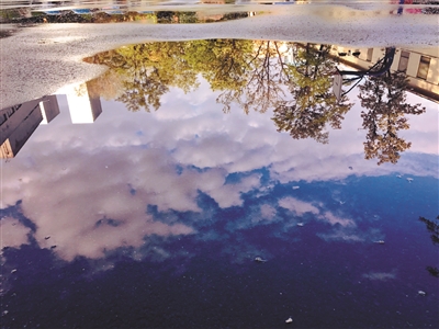•   5月22日,春雨在沈城淅淅瀝瀝下了一個白天。傍晚時分,雨漸歇,天空中高掛起慵懶的彩虹,路面上的積水映射著藍天、白云,那么美好,讓人們不用遠(yuǎn)眺就能收獲這抹春色。常晟罡 攝