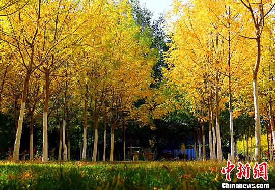 10月15日,進入秋季以來,在新疆托克遜縣的公園里,園內(nèi)的樹林已經(jīng)褪去綠色,披上了黃色外衣,在陽光的照射下尤為光彩奪目,秋景迷人如畫。每年秋天,隨意走在托克遜的大街小巷、鄉(xiāng)村小道,隨處可欣賞到托克遜秋天的美麗景色。