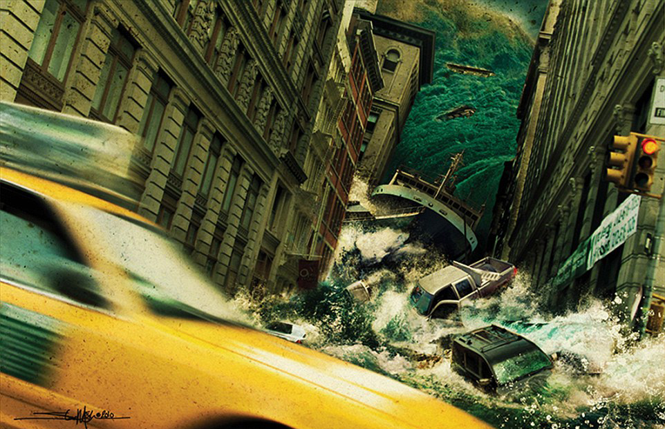 國際在線專稿:據(jù)英國《每日郵報》12月23日報道,加拿大藝術(shù)家史蒂夫·麥吉近日發(fā)布許多自己創(chuàng)作的世界末日圖,幾乎包括了每種導(dǎo)致世界被終結(jié)的可能情況,比如大洪水、超級地震等。此外,還有飛機(jī)墜毀在紐約市中心、悉尼港出現(xiàn)黑洞、法國海岸大規(guī)模漏油等場景。