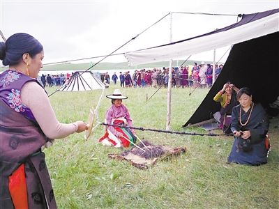 數(shù)千年來,生活在青藏高原逐水草而居的藏族,因時(shí)代的變遷與地域的差異,形成了豐富多彩的歷史文化。其中游牧文化作為一個(gè)藏文化的一個(gè)典型代表,灑落在草原深處。 8月28日,記者來到黃南藏族自治州澤庫(kù)縣草原,有幸目睹了當(dāng)?shù)赜文撩袼孜幕姓故尽聂佤蔚闹谱、牦牛毛手工編織、唐卡繪畫,到酥油的制作,牧民轉(zhuǎn)場(chǎng)地落戶、藏餐的制作、再到皮袍的制作、羊毛制品的制作及和日石刻雕刻的過程,一頂頂帳篷內(nèi),一個(gè)個(gè)游牧民俗文化展示有生活場(chǎng)景,吸引著來自全國(guó)各地的參觀者。如今,隨著青海生態(tài)畜牧業(yè)試驗(yàn)區(qū)建設(shè)的全面推進(jìn),千百年來,藏族在游牧生活中積淀的民俗文化正被一一挖掘,成為新時(shí)期草原民俗文化旅游的重要元素。