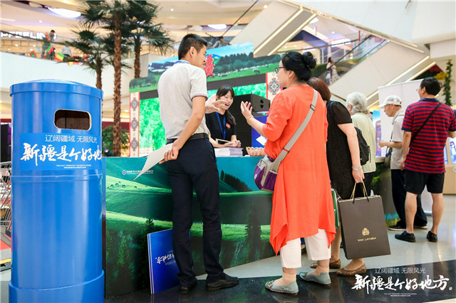 推介會(huì)當(dāng)天,新疆還在北京愛(ài)琴海購(gòu)物中心同步舉行了旅游路演活動(dòng),活動(dòng)現(xiàn)場(chǎng)不僅有精彩的新疆歌舞表演,還設(shè)置了有趣的游戲互動(dòng)環(huán)節(jié)。在新疆各地州市的推介區(qū),游客可獲取新疆旅游宣傳冊(cè),充分了解到新疆各地特色旅游資源。琳瑯滿目的新疆特色旅游商品展位吸引了民眾的目光,和田的大棗、伊犁的黑蜂蜂蜜、精河的枸杞等原生態(tài)旅游商品深受民眾喜愛(ài),F(xiàn)場(chǎng)設(shè)置的互動(dòng)郵筒更是加強(qiáng)了游客的體驗(yàn)感,游客在展銷區(qū)不僅深入了解了新疆特色旅游產(chǎn)品,還能購(gòu)買(mǎi)到新疆特色商品。