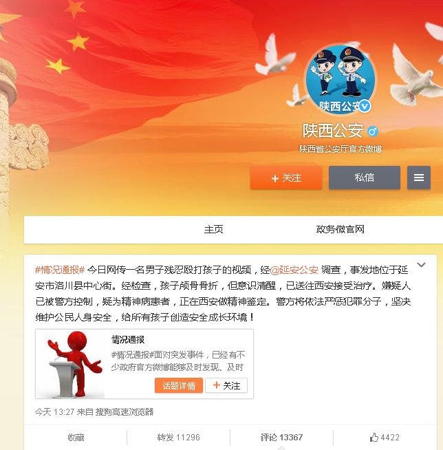 陜西男童被打事件:打人者有精神病史 已被刑拘