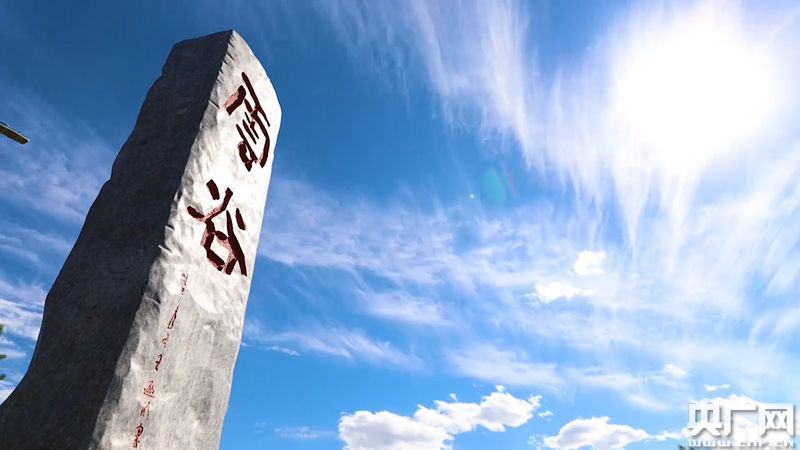 佇立在內(nèi)蒙古和林格爾新區(qū)內(nèi)寫有“云谷”二字的石碑。(視頻截圖)