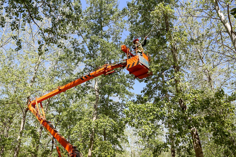 園林工人正在對高大柳樹多余的枝條進(jìn)行修剪(北京市園林綠化局供圖)