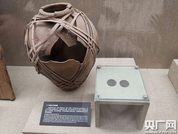 貴州省習(xí)水縣土城鎮(zhèn)四渡赤水紀(jì)念館內(nèi)展示的碎陶罐(央廣記者熊逸攝)