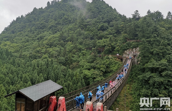 主題采訪團(tuán)記者行走在位于貴州省黎平縣高屯街道上少寨的紅軍橋(央廣記者熊逸攝)