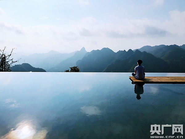 朱砂古鎮(zhèn)“放下山莊”的無邊際觀景臺(中央廣播電視總臺央廣記者 李展鴻 攝 )