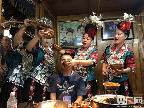 苗家以酒待客的習俗,稱為“高山流水”(中央廣播電視總臺央廣記者 李展鴻 攝)