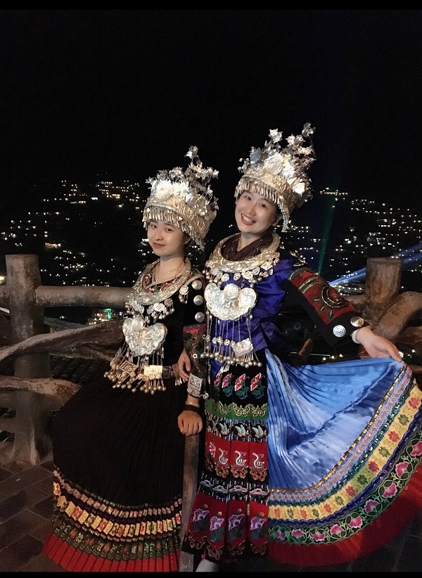采風團成員身著苗族服飾在千戶苗寨留影(央廣網(wǎng)發(fā) 徐靜 攝)
