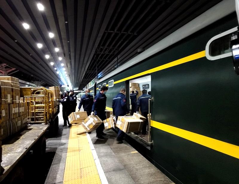 為了保障本次物資順利運送,北京西站開辟“綠色通道”,提前安排好雙倍人員和裝卸機具(北京鐵路供圖)