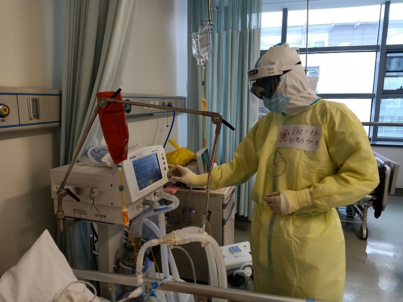 此后的幾十天里,經(jīng)歷過氣管插管、有創(chuàng)無創(chuàng)呼吸機調(diào)整、動脈穿刺、中心靜脈穿刺、俯臥位通氣、休克搶救等一系列訓練,吳超的工作越來越上手。在緊張而忙碌的工作中,他和隊友也不斷地把患者從死亡線上拉回來,遇到焦慮的病人,還經(jīng)常跟他們聊天交流,疏解病人的焦慮心情。