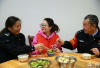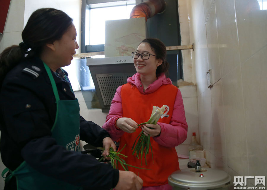 當(dāng)被問到在合家團聚的日子卻不能回家時是否有遺憾,簡清漢樂呵呵地說:“我這一家三口天天都一起過年,比什么都幸福開心!”一家三口和派出所民警一起吃了頓團圓飯后,就各自在不同的崗位上奔忙。圖為:1月21日,簡清漢妻子熊麗霞和女兒為派出所民警忙碌小年年飯。 -