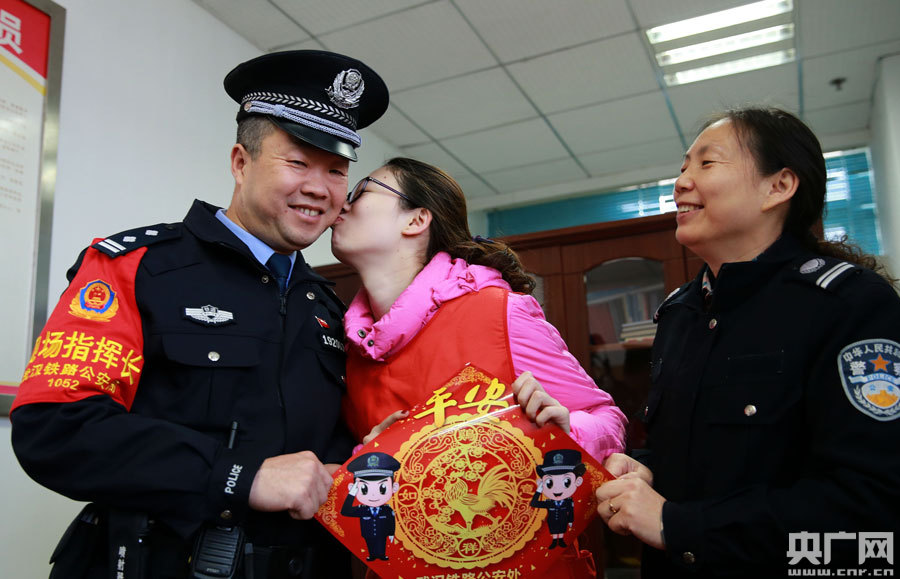 簡清漢和堅守在京廣高鐵線上的每一名普通鐵警并沒有什么不同:巡線、排查隱患、督查崗位,風(fēng)里來雪里去,這就是簡清漢每天的工作常態(tài)。但他卻又和其他戰(zhàn)友有一些不同的地方——他的妻子和女兒已經(jīng)同他一道并肩站在護衛(wèi)平安的崗位上三年了。圖為:1月21日,簡清漢為女兒簡夢悅整理衣物喜迎旅客。 -