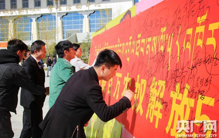校黨委副書記、校長黃曉曦為獲獎者頒獎 央廣網拉薩3月28日消息(記者普布次仁、羅布次仁)五星紅旗,高高飄揚,布達拉宮,巍峨矗立。3月28日,在這個吉慶祥和的日子,西藏拉薩市高等師范?茖W校隆重舉行了“3.28西藏百萬農奴解放紀念日”系列活動。 上午十一時許,紀念活動升旗儀式在校學生活動中心前舉行,校黨委副書記、校長黃曉曦及校領導和全體師生一同出席了此次升旗儀式。儀式結束之后,為豐富本次3.28紀念活動形式內涵,展現新西藏、新生活、新藍景,校團委特舉辦了此次作品征集活動,活動征集期間,共收到來自六個系部師生的兩百余份各類型作品,涵蓋書法、攝影、繪畫、手工、作文等五個大項。經評定,共選出一二三等及優(yōu)秀獎共12件,同時選出了40余件優(yōu)秀作品進行了展出,活動在廣大師生間取得了良好的反響。 為豐富活動內涵,校團委于下午組織舉辦了盛大的慶祝表演活動,來自各級學生組織的同學們精心編排了數個文藝節(jié)目,演出在異彩紛呈的歌舞表演中走向高潮;顒訉⒔猜,全體在場師生一同參與到集體鍋莊舞中來,通過鍋莊舞表達了對人民當家做主的喜悅和對黨的感激之情。學校師生紛紛表示:58年前的歷史絕非西藏人民幸福的頂點,而恰恰是幸福的起點。知史鑒今,昭示未來,活動的舉辦進一步增強了學校師生的愛國愛黨情懷,加強了青少年愛國主義與民族團結教育,引導同學們進一步樹立為建設社會主義新西藏添磚加瓦的主人翁意識,努力譜寫中華民族偉大復興中國夢的西藏篇章。