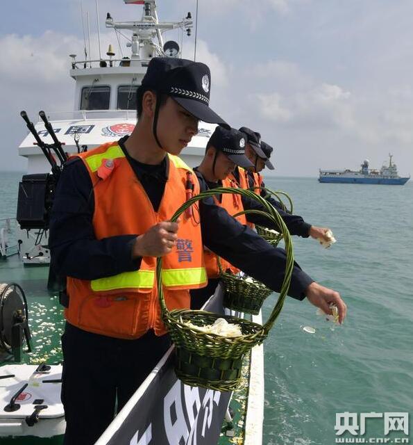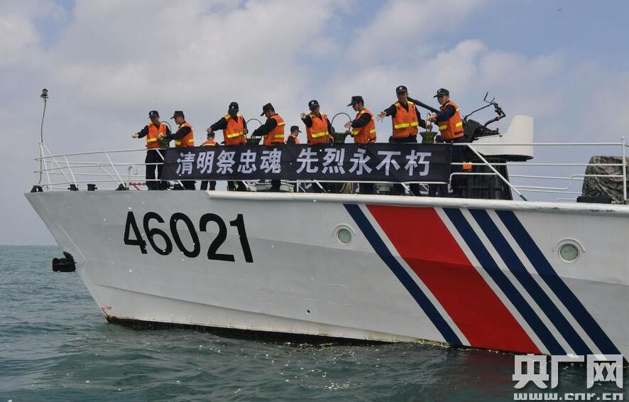 3月30日上午,海南海警一支隊組織官兵在瓊州海峽開展“海上祭英烈”活動。 攝影:吳意 央廣網海口3月30日消息(記者 朱永 通訊員 吳意 林奕曄)為緬懷革命先烈,弘揚愛國精神,3月30日上午,海南海警一支隊組織官兵在瓊州海峽開展“海上祭英烈”活動。 上午9時,海警一支隊46021艇緩緩駛向大海。到達目標海域后,汽笛長鳴,響徹海天,海警官兵在艦艇前甲板舉行莊嚴的降半旗默哀儀式。隨后,官兵們面向大海立下錚錚誓言:繼承先烈遺志,弘揚光榮傳統(tǒng),爭當海警衛(wèi)士,保衛(wèi)祖國海疆;顒幼詈,官兵們分別于左右兩舷向“英烈”祭上鮮花,一片片黃菊花、白玫瑰花瓣被灑向大海,寄托對革命英烈的緬懷之情。 -