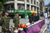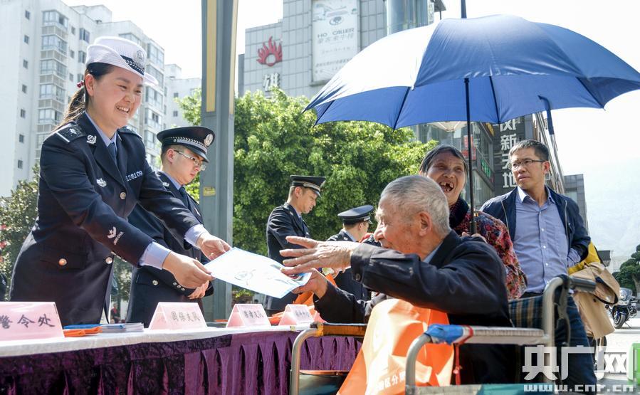 向市民分發(fā)消防盜竊等防范知識傳單(央廣網記者 陳鵬 攝)