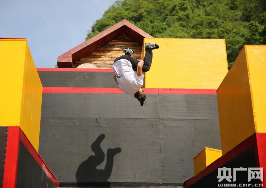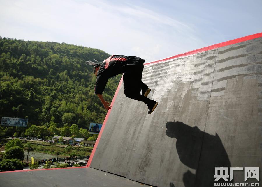 中外跑酷選手對(duì)決張家界 央廣網(wǎng)張家界4月24日消息(記者傅蕾 通訊員吳勇兵)4月22日,2017中國(guó)山地戶(hù)外健身休閑大會(huì).黃龍洞中外跑酷大賽在湖南張家界黃龍洞風(fēng)景區(qū)3000多平方米的單體斜坡屋頂上舉行。17名選手中,除了國(guó)內(nèi)15名跑酷愛(ài)好者外,還有來(lái)自烏克蘭、哈薩克斯坦的2名外籍跑酷選手參賽。最終,中國(guó)選手何意瑜獲得第一名。 -