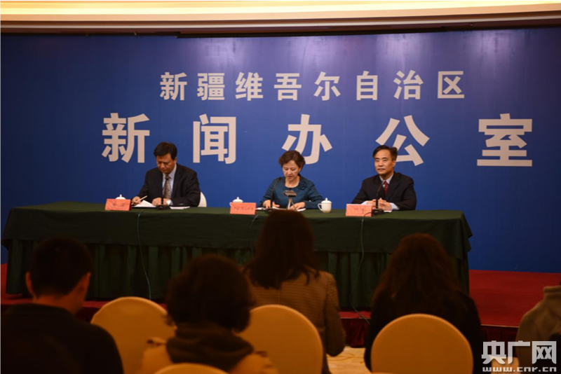 新疆維吾爾自治區(qū)文化和旅游廳副廳長古麗·阿不力木介紹新疆分會場活動(央廣網(wǎng)發(fā) 陳卓然 攝)