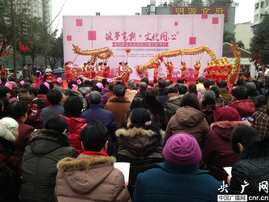 2015年春節(jié)期間,成都高新區(qū)將陸續(xù)開展一系列文化活動進(jìn)園區(qū)活動。用傳統(tǒng)的民俗方式向轄區(qū)的企業(yè)和群眾送上節(jié)日的祝福,營造文明、歡樂、祥和的節(jié)日氣氛。
