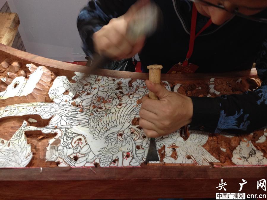 博覽會現(xiàn)場展示的紅木雕刻制作工藝(央廣網(wǎng)記者 何偉奇 攝)