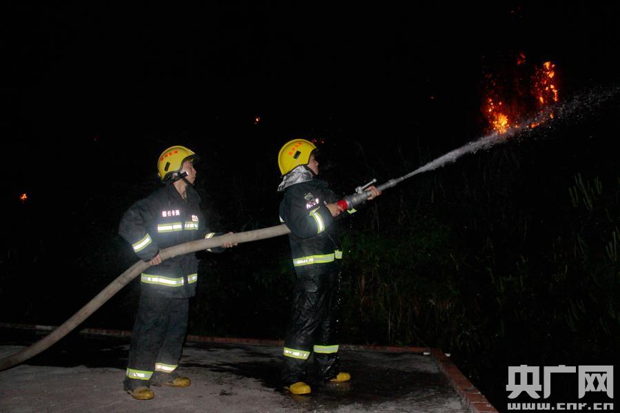 梧州市消防支隊連夜投入滅火。(央廣網發(fā) 雷開偉 攝)