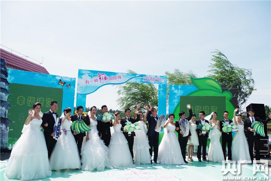 央廣網(wǎng)海口5月20日消息(記者朱永)今天上午“有一種幸福叫瓊!覀兊膼矍樨S收啦”主題婚慶月活動在海南瓊海啟動,10對來自祖國各地的情侶在瓊海塔洋鎮(zhèn)舉辦了浪漫的婚禮,這標(biāo)志著為期三天的系列婚慶活動正式啟動,將對當(dāng)?shù)芈糜蔚陌l(fā)展帶來極大的促進作用。