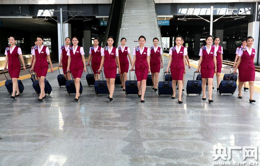 今天下午,部分高姐按照出乘要求身著新制服列隊進(jìn)入福州火車站,頓時成為一道靚麗的風(fēng)景吸引了過往旅客的目光。合福高鐵開通運行之日,她們也將為“醉美合福”增光添彩。