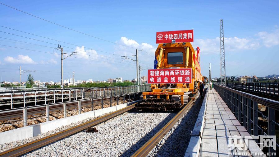 央廣網(wǎng)?6月30日消息(記者許云 吳媚苗)6月30號(hào)下午18時(shí)整,伴隨著鋪軌車作業(yè)的轟隆聲,鐵路工人們將海南西環(huán)鐵路上最后一根長(zhǎng)鋼軌在海口火車站附近鋪下。至此,正線全長(zhǎng)345公里的海南西環(huán)鐵路正式完成鋪軌!靶陆êD衔鳝h(huán)鐵路鋪軌工程全線雙線鋪通!”——廣鐵集團(tuán)?诠こ探ㄔO(shè)指揮部副指揮長(zhǎng)林鎮(zhèn)洪用響亮的聲音宣布道。