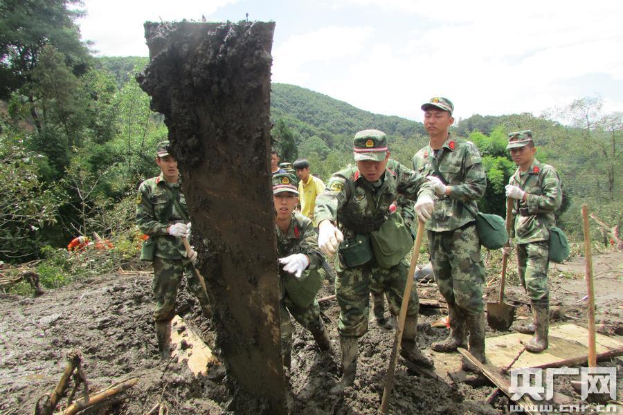 武警云南省昌寧縣森林中隊救援小分隊官兵趟河流、穿泥濘,克服沿途道路坍塌、毀壞等不利因素,在最短的時間趕到漭水鎮(zhèn)共裕村麻地村民小組災(zāi)區(qū)一線。麻地村民小組塌方面積13余畝,1家3口被掩埋。森警官兵為搶趕救援時間,分成3個小組在搜救犬發(fā)出信號的50米區(qū)域內(nèi),徒手挖刨被埋村民。截止發(fā)稿時,地方3臺挖掘機已進入現(xiàn)場,與官兵一同展開救援作業(yè),救援行動仍在緊張進行中。