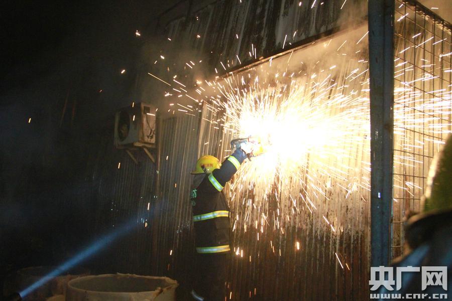福州閩侯一批發(fā)市場(chǎng)失火 百名消防員火場(chǎng)內(nèi)筑人墻“分割”撲滅(朱曉航攝 央廣網(wǎng)發(fā))