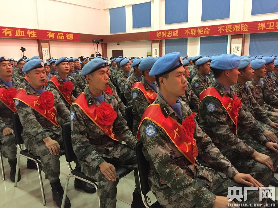 中國(guó)第十七批赴利維和部隊(duì)接受表彰的151名維和官兵(央廣網(wǎng)記者 韓曉 攝)