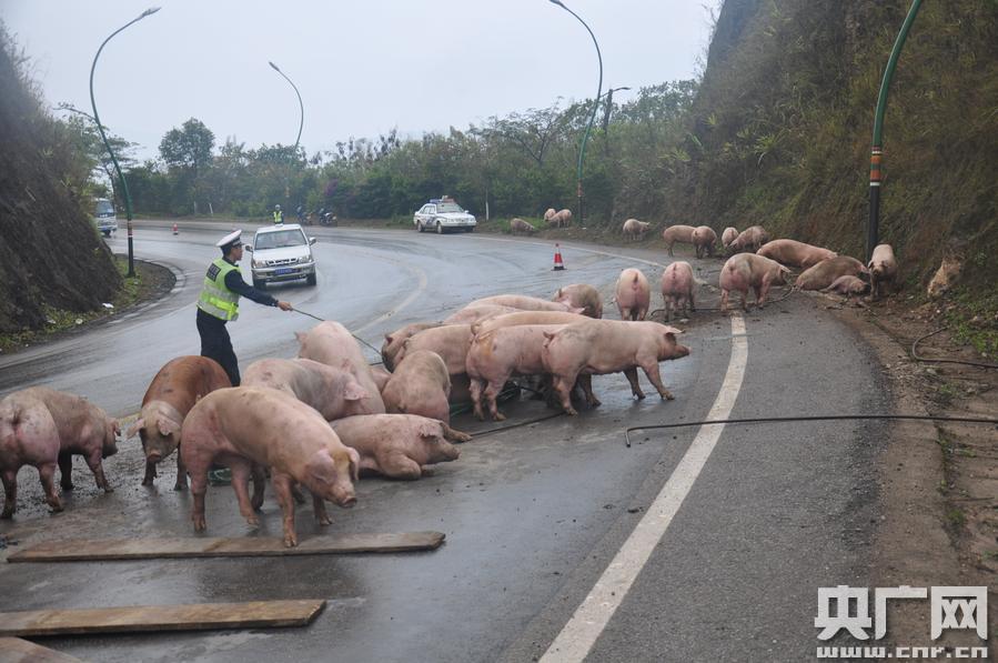 近日,普洱市一重型貨車在下坡轉(zhuǎn)彎過程中發(fā)生側(cè)翻,車上161頭生豬逃脫在公路上“撒歡”一個多小時。