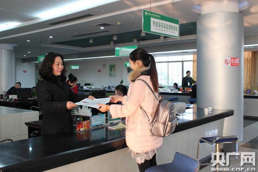 央廣網(wǎng)武漢1月18日消息(記者張毛清 鄂州臺(tái)記者廖靖飛 梁怡青 王芳)元月15日,在湖北省鄂州市政務(wù)服務(wù)大廳食品藥品審批窗口,鄂州市食品藥品監(jiān)督管理局向湖北良品鋪?zhàn)邮称酚邢薰径踔葜窳謴V場(chǎng)一分店發(fā)出了該市第一張食品經(jīng)營(yíng)許可證,這標(biāo)志著實(shí)行食品流通許可證與餐飲服務(wù)許可證“兩證合一”的新版食品經(jīng)營(yíng)許可證在鄂州市正式啟用。