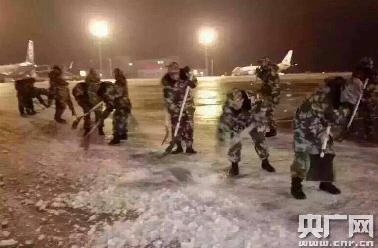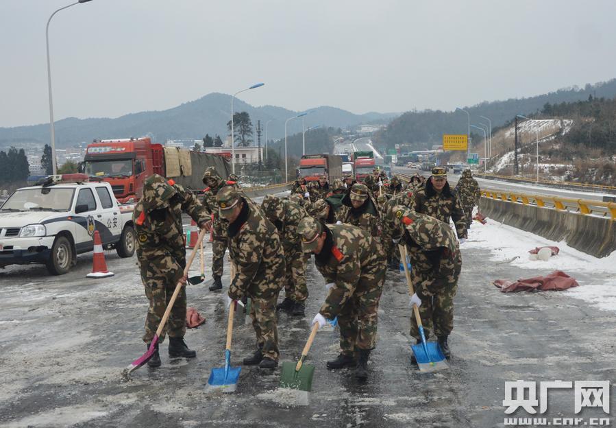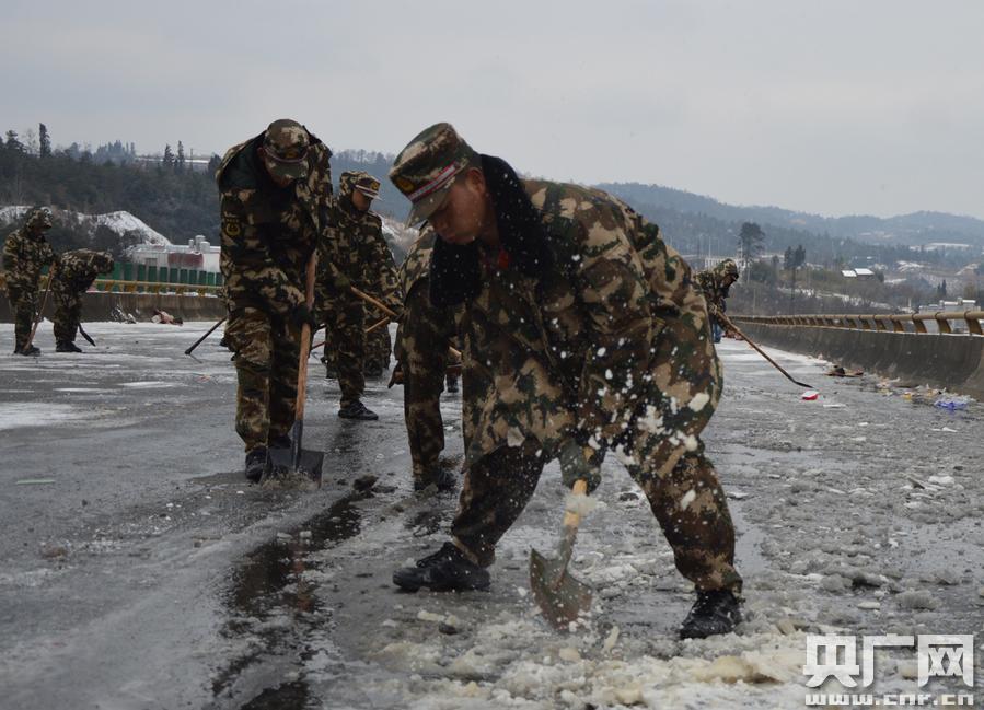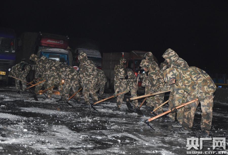 官兵們爭分奪秒除冰雪(攝影 龔龑)