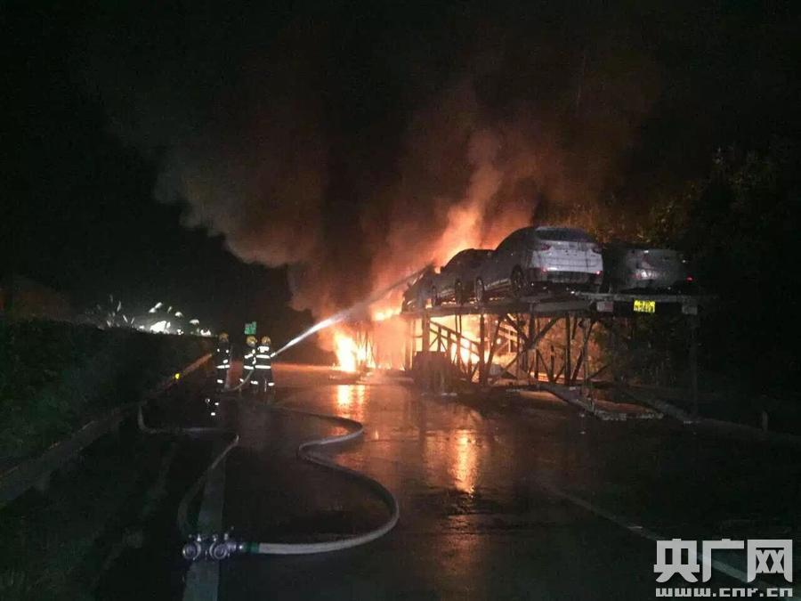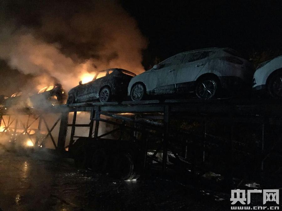 央廣網(wǎng)南寧1月26日消息(記者 張壘 許大為 通訊員 鐘德林)1月25日20時許,G80線廣昆高速公路岑溪段發(fā)生一起重型掛車行駛中起火,導致所運載的13輛小汽車燒毀,無人員傷亡,交通暫時中斷,當?shù)叵馈⒔痪綀鎏幹谩?/p>